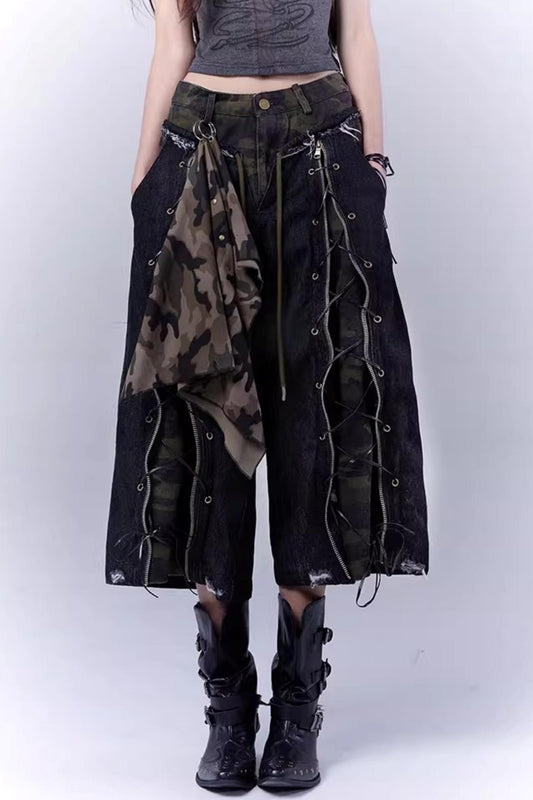 Patchwork-Karo-Stickerei-Top & Rock Set-Up