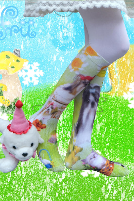 Grüne, mittelhohe Socken mit Hundeaufdruck