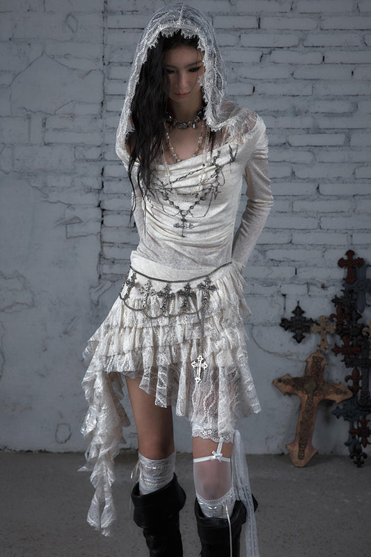 Gothic Vintage Spitzenoberteil mit Glockenärmeln