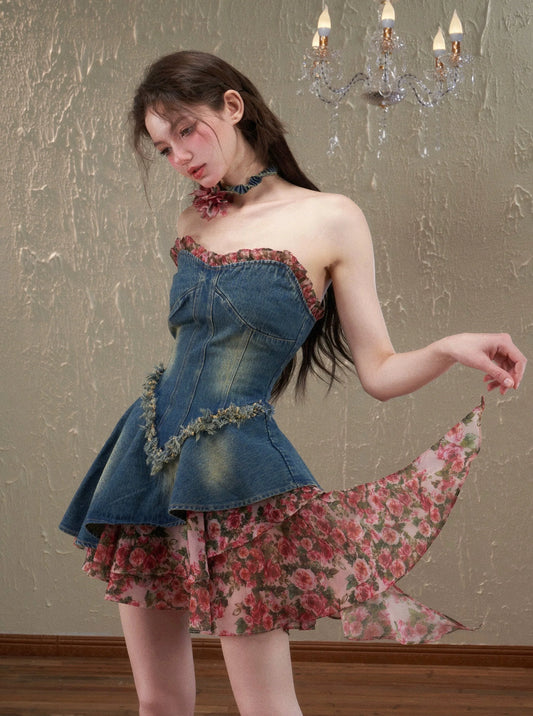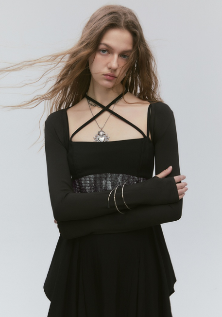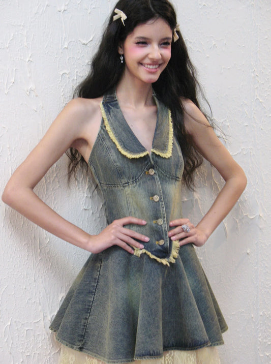 Volcano Water Aged U-Neck Slimming Halterneck Dress