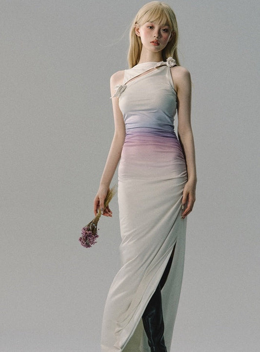 Tailliertes, flaches Schulter-Ärmelloses Kleid mit Farbverlauf