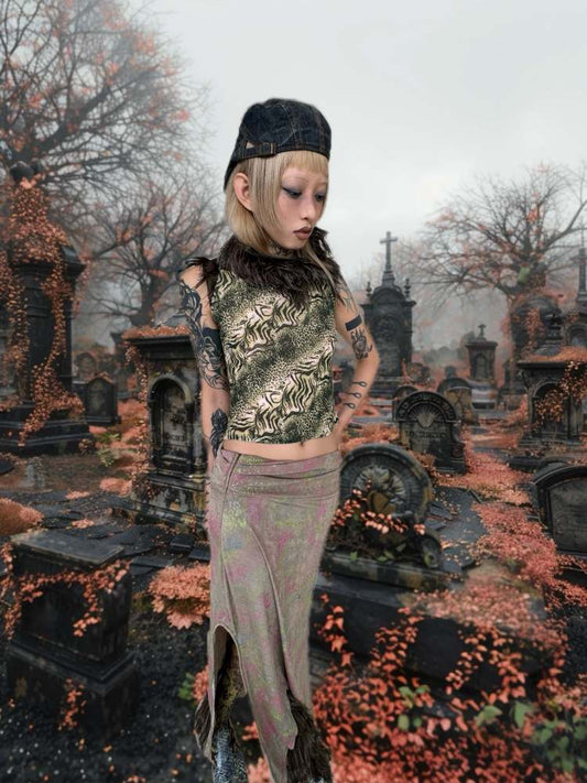 „Zurück in den Dschungel“ Tanktop mit Leopardenmuster und Pelzkragen