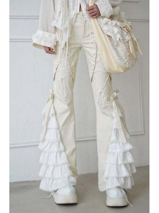 Gestufte, ausgestellte Hose mit Schleife und Schnürung