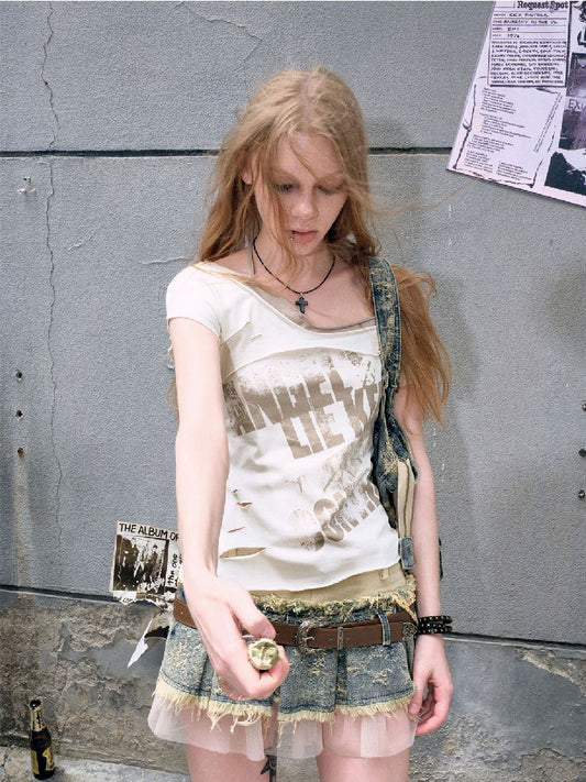 „Crooked“ Raw Edge Graffiti T-Shirt