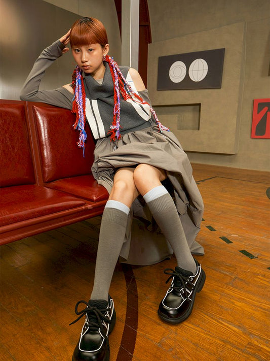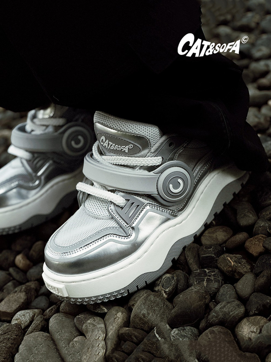 Schwarze Patchwork-Sport-Chunky-Schuhe