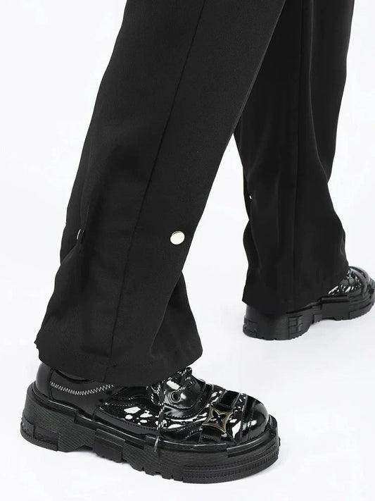 Schwarze Punk-Mary-Jane-Einzelschuhe mit Schweinsnase und quadratischer Zehenpartie