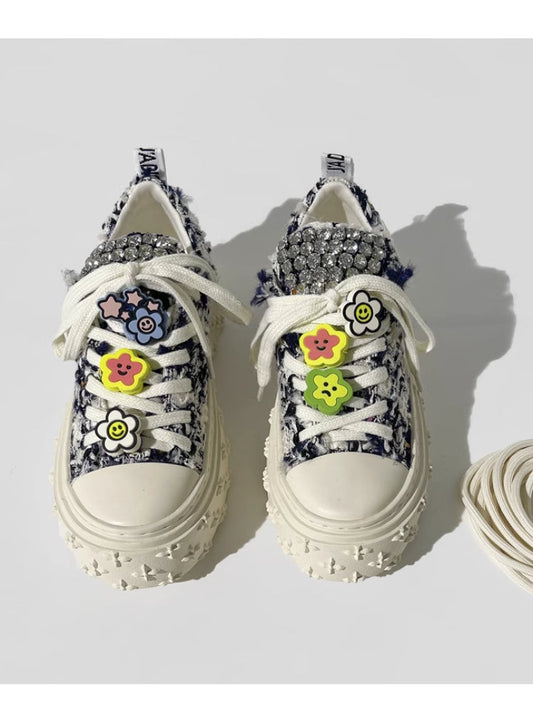Canvas-Blumen-Knöchelschnür-Plateauschuhe