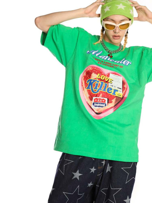Kurzarm-Oversize-T-Shirt mit Niche Love Killer-Print