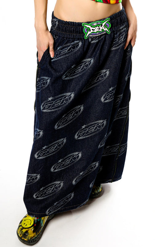 Rave Retro Seitlicher Reißverschluss Lockere A-Linien-Jeansrock