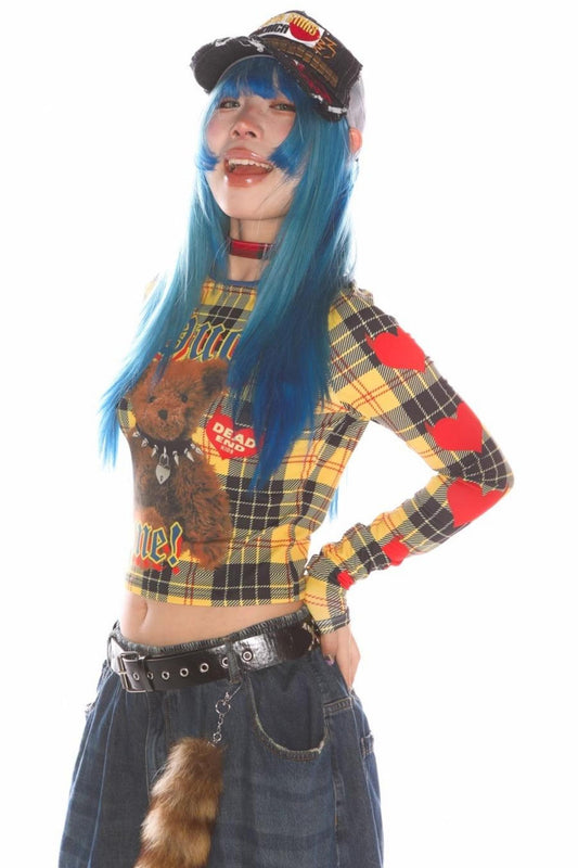 Figurbetontes Top mit Karobären-Print