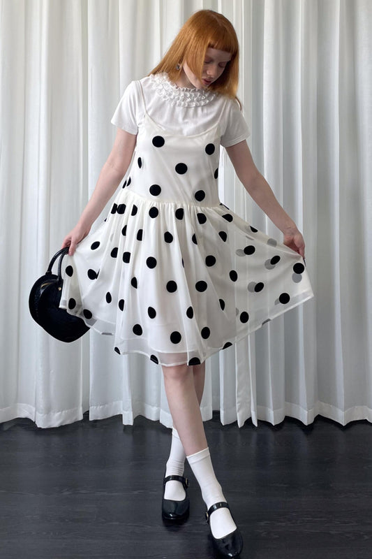 Sommerkleid mit Spitzennetz, Tupfenmuster und Flockdruck
