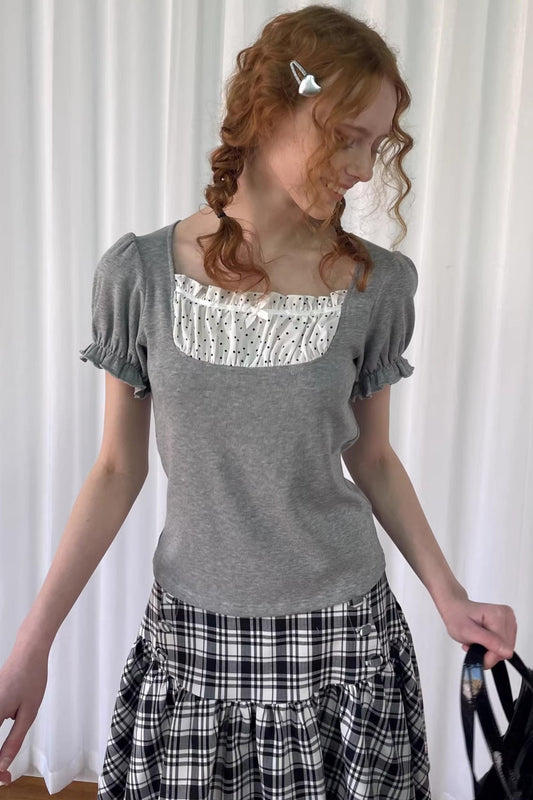 Patchwork-Polka-Dot-T-Bluse