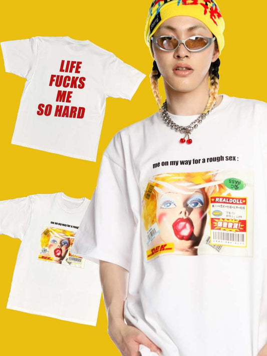 „Life Fucks Me So Hard“-Kultur-Kurzarm-T-Shirt in Übergröße