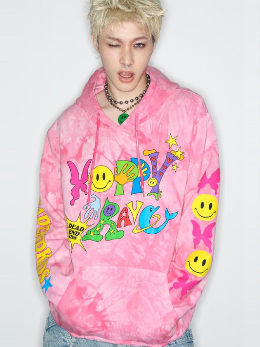 Smiley Pink Tie-Dye Kapuzenpullover