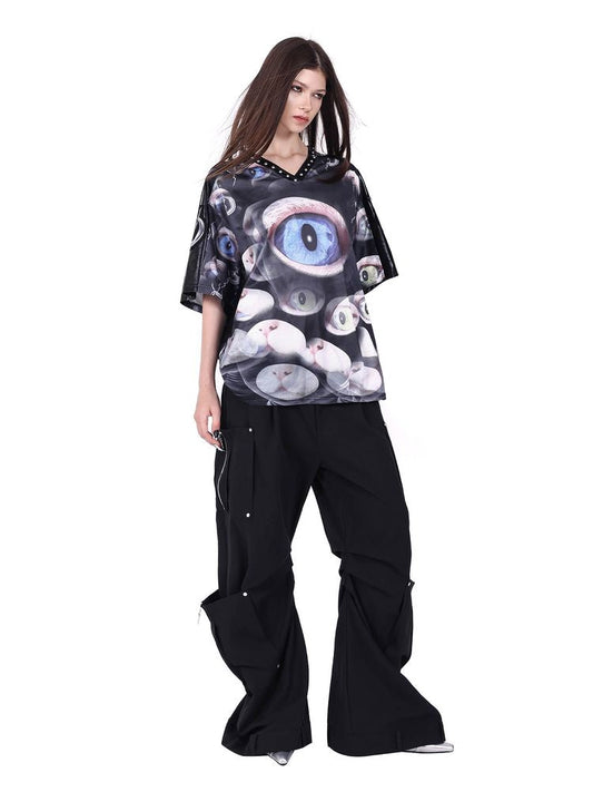 V-Ausschnitt Patchwork Lose Kurzarm