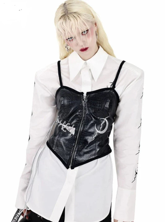 Slim Schlitz Genderless Kurzarm mit Nieten und Reißverschluss