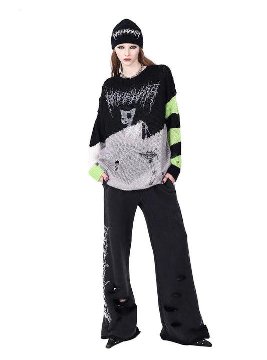 Gestreifter, zerrissener Pullover