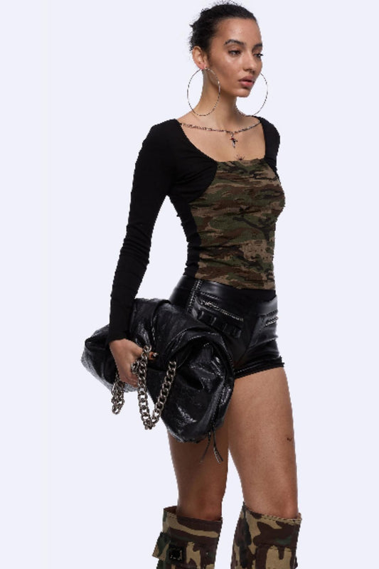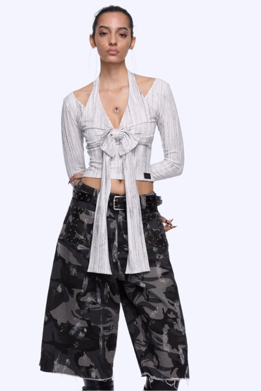 Kontrastfarbenes Shirt mit Bindeband in der Taille