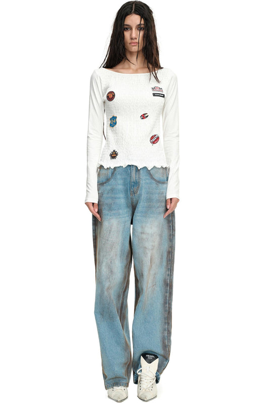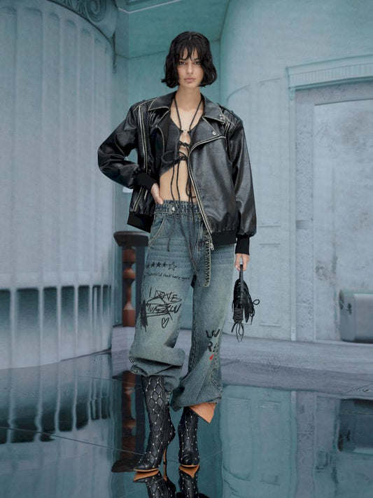 Lässige, lockere amerikanische Vintage-Damenjeans mit weitem Bein