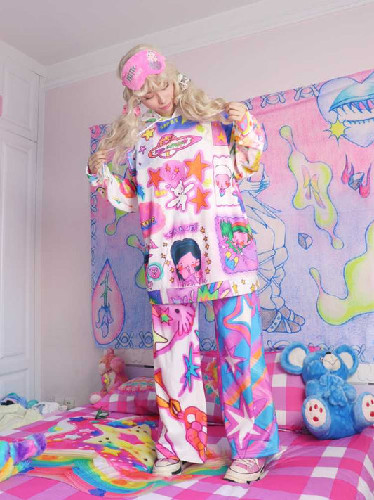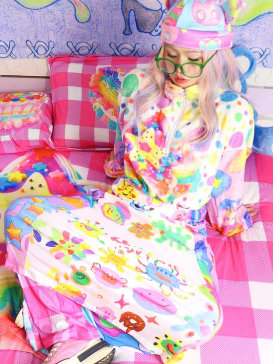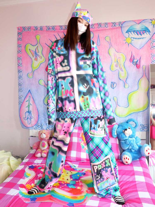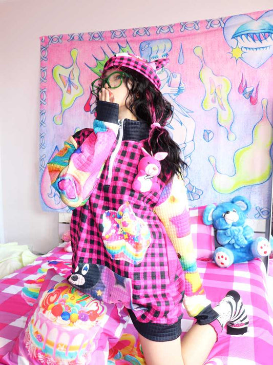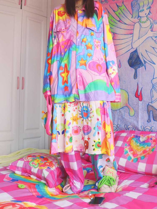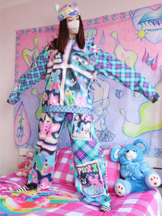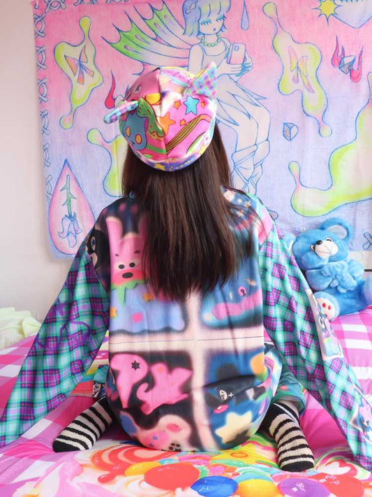 Lockerer karierter Rock mit Cartoon-Print