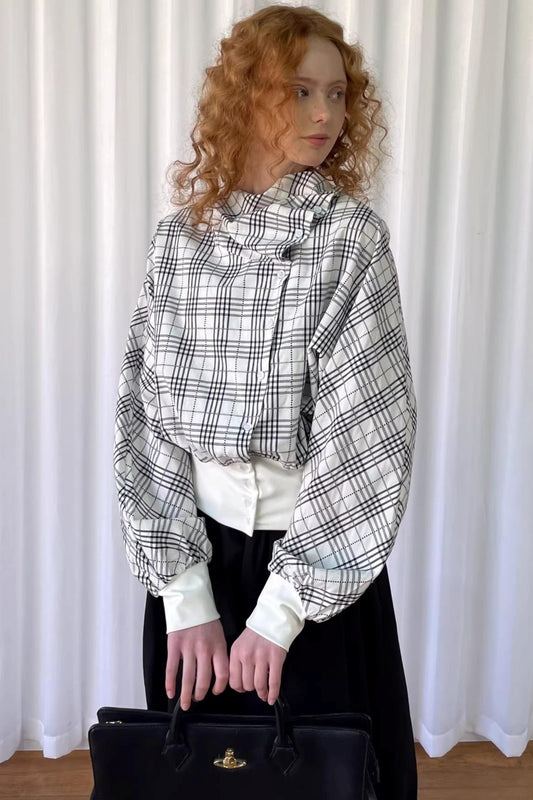 Kariertes Plissee-Kragenhemd