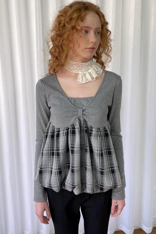 Graues Strickoberteil mit Karomuster