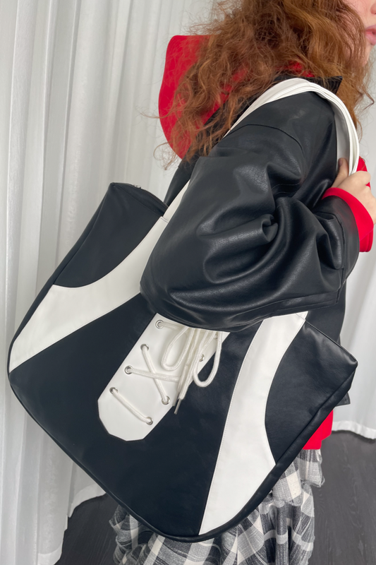 Schwarz-weiße Tote Bag mit Schnürung