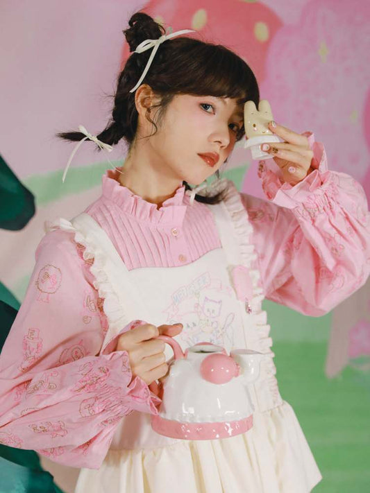 Kleid im Lolita-Schürzenstil mit Katzenstickerei