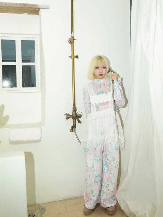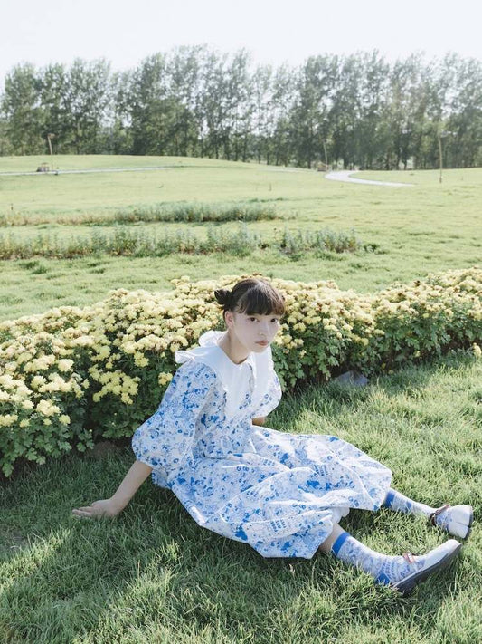 Laternenrockkleid mit Spitzenkragen und Cartoon-Print