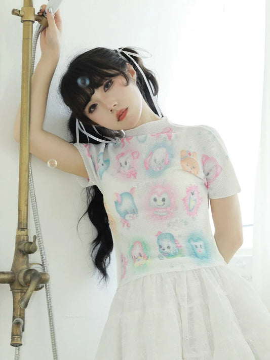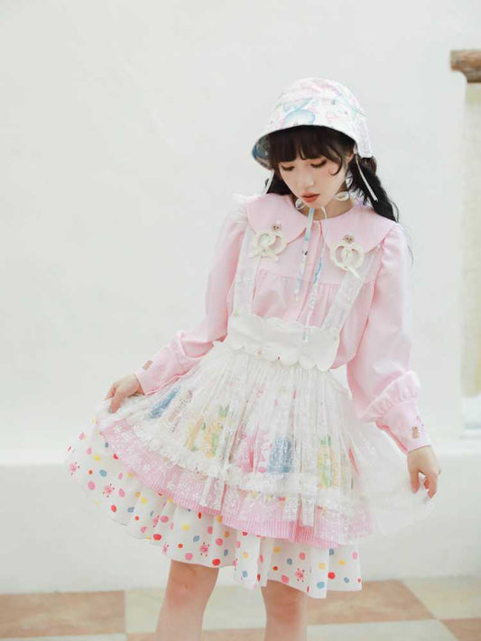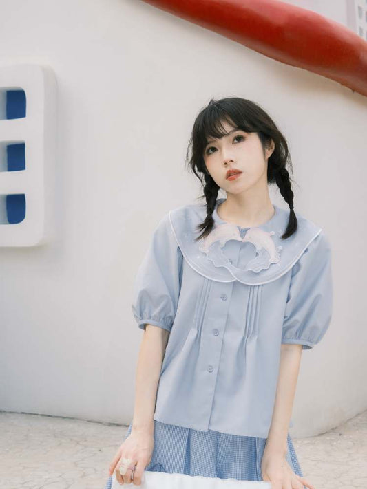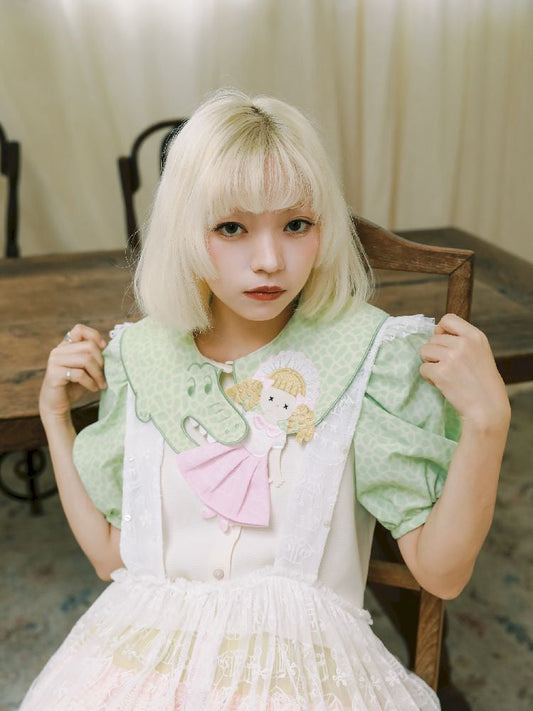 Lustiges, halbärmliges Lolita-Hemd mit besticktem Kragen