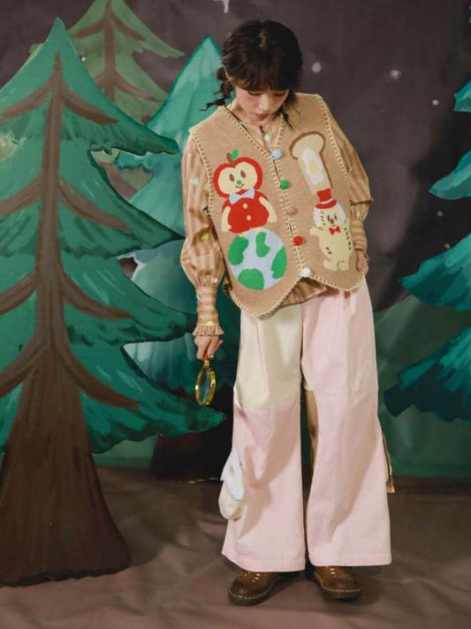 Bär & Kaninchen Spielhaus Flauschige bunt gestreifte Strickweste
