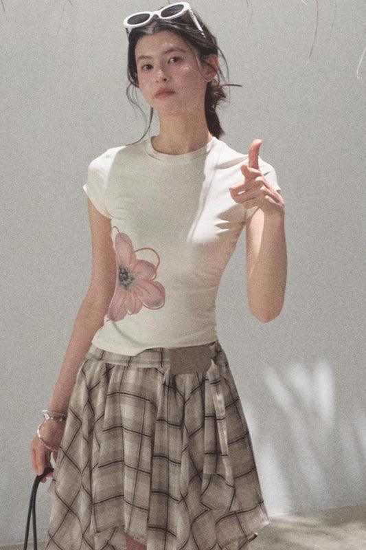 Top & Hose mit Azetat-Blumenknospen-Muster
