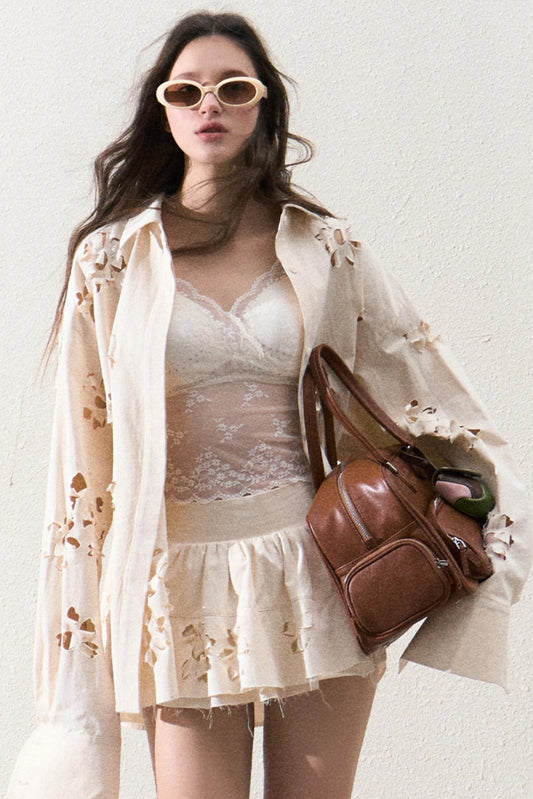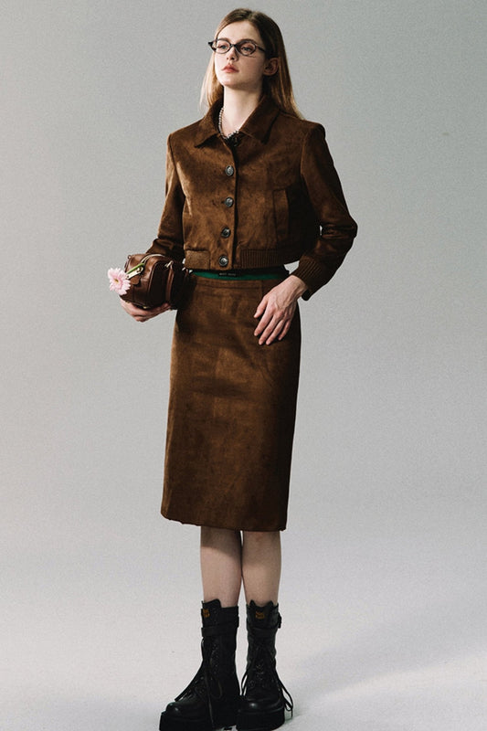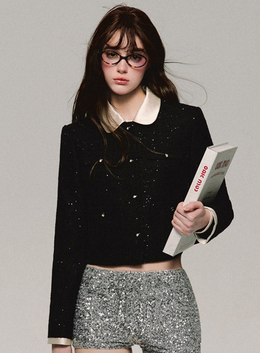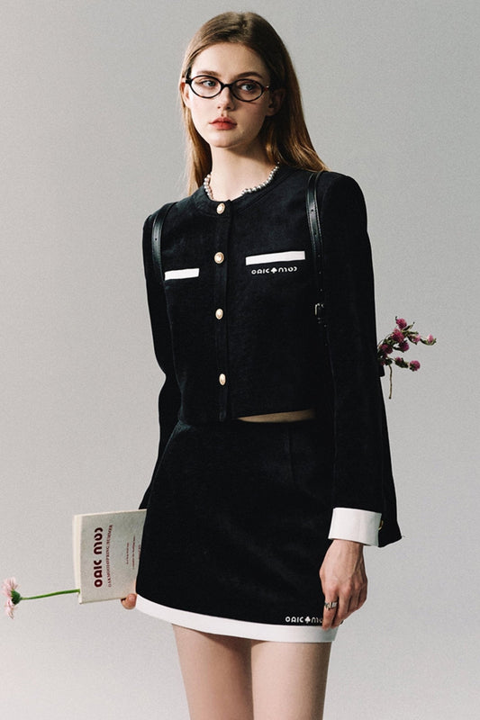 Schwarzer Tee Nacht Patchwork Crop Coat Set-Up