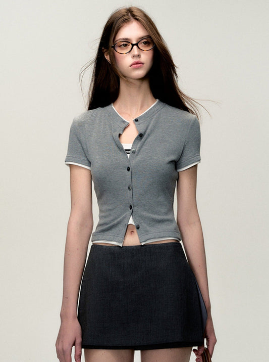 Ancient Shrine Kragen Langarm Strick-Basisshirt