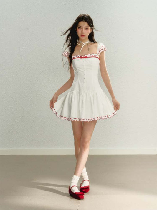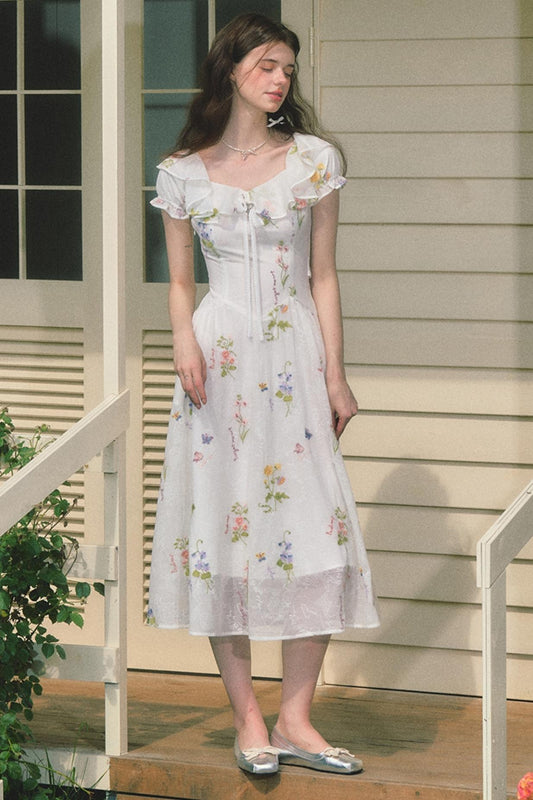 Kleid mit Schmetterlingsstickerei und quadratischem Ausschnitt