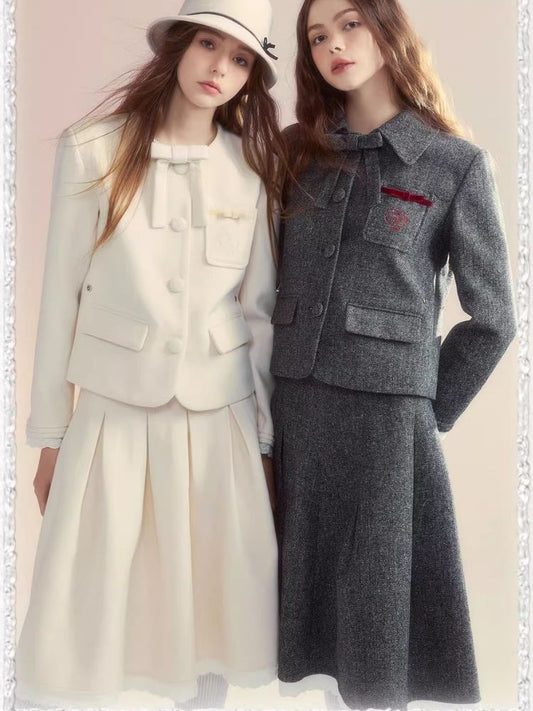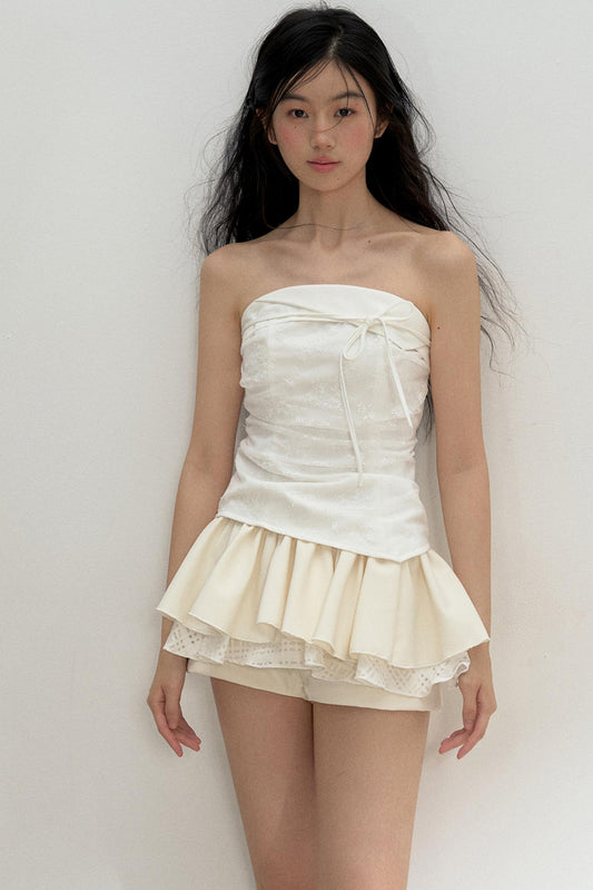 Perlenbesetztes Prinzessinnenärmel-Top-Rock-Set