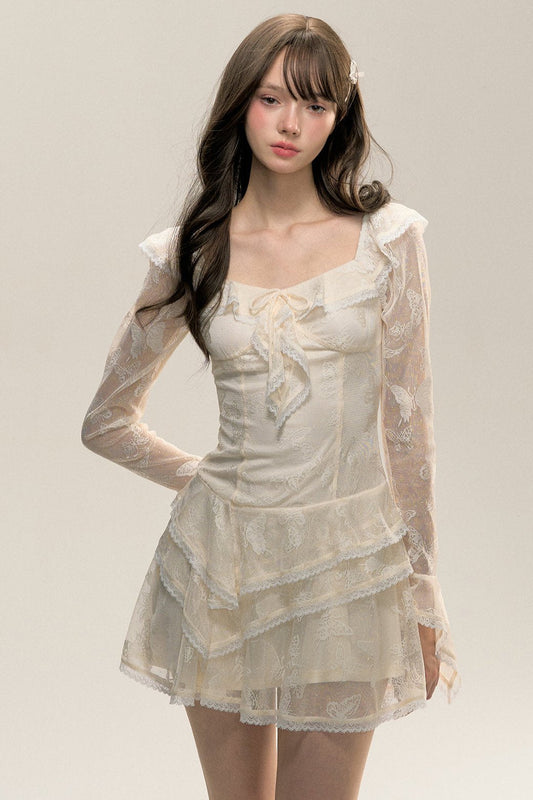 Glockenblumen & Geißblatt-Spitzenrock-Kleid
