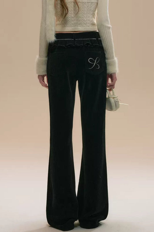 Schwarzer Rock mit Rosenmuster und Drapierung an der Hüfte
