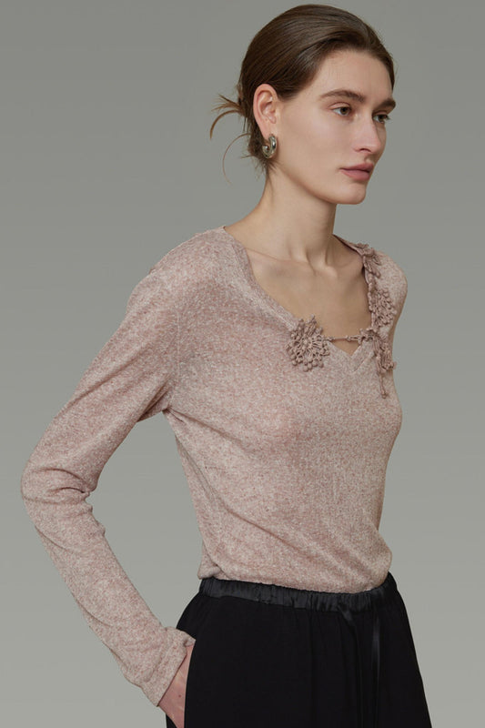 Herbstliches Spitzenoberteil mit V-Ausschnitt
