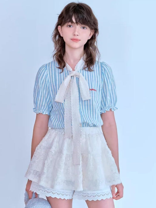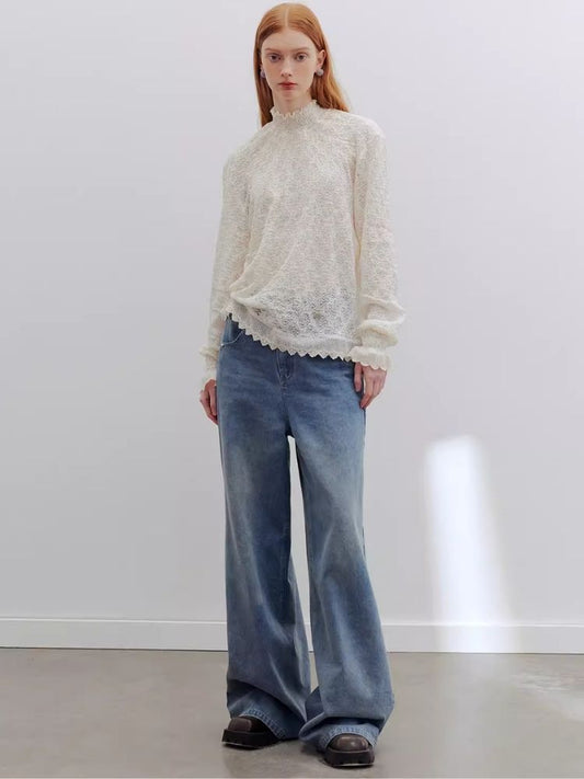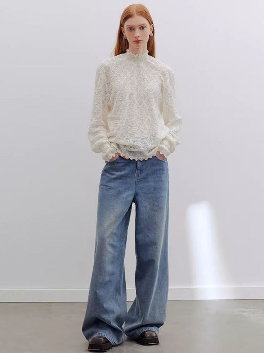 Spitzenbluse mit tief angesetzter Schulterpartie
