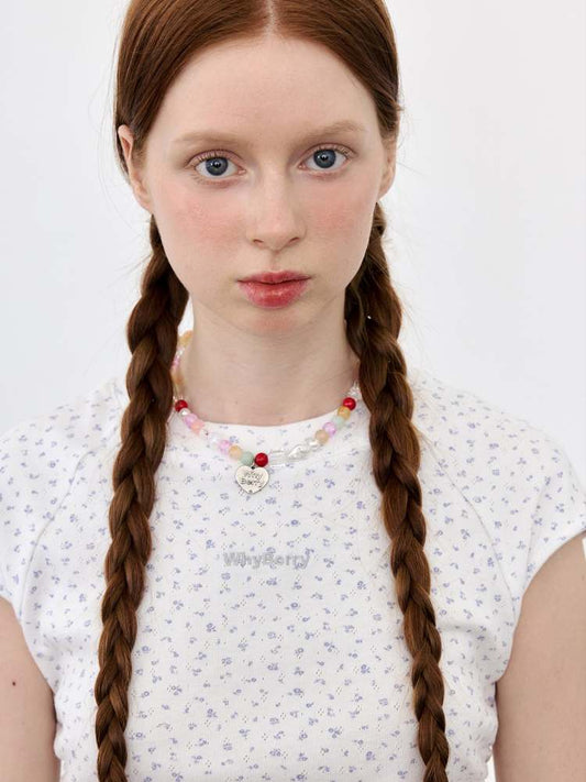 Geblümtes, tailliertes, verkürztes T-Shirt