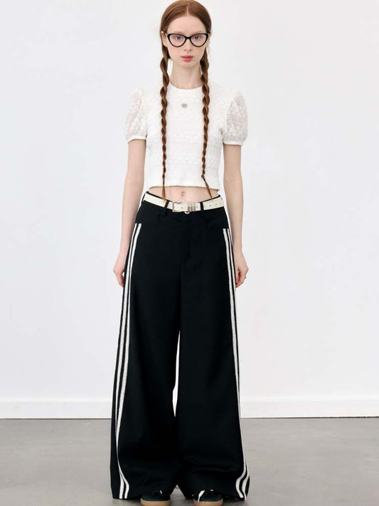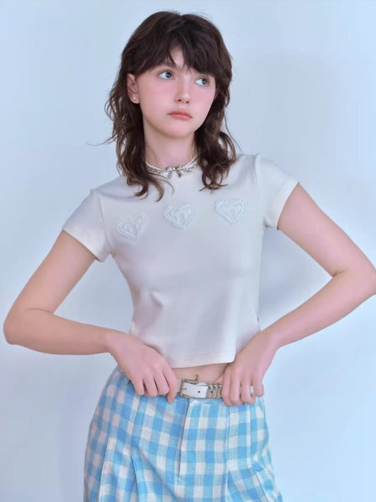 Kurzes T-Shirt mit Blumenprägung und Puffärmeln