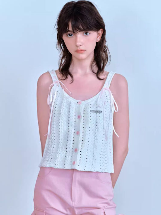 Spitzenstrick-Tanktop mit Logo-Stickerei