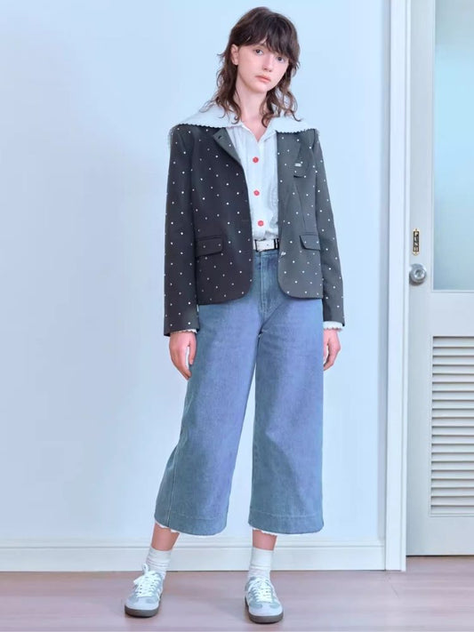 Kurze Jacke mit rundem Halsausschnitt und Blasenärmeln