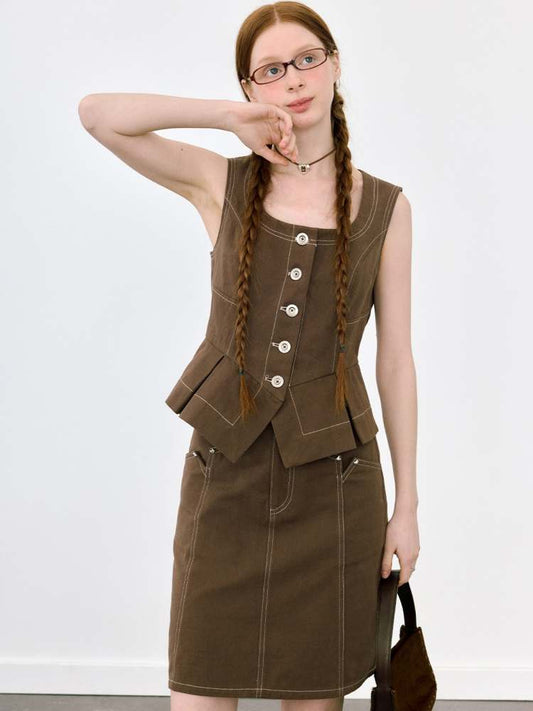 Strickoberteil in Kontrastfarbe mit überschnittenen Schultern und Schößchen