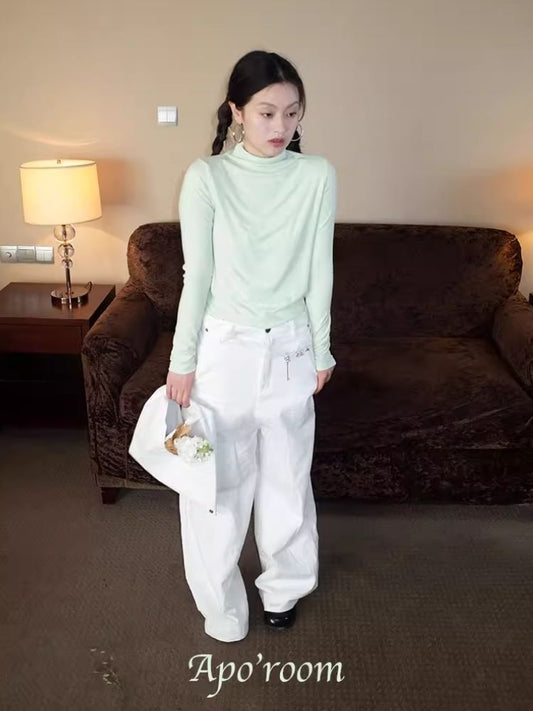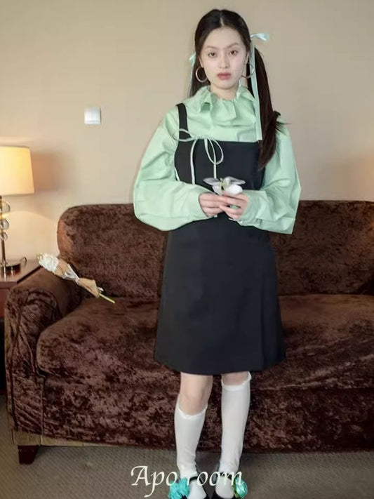 Hellgrünes Hemd mit elastischem Saum und mittlerem Kragen