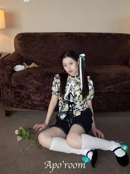 Kurzarm-T-Shirt mit Kleeblatt-Print an der Schulter