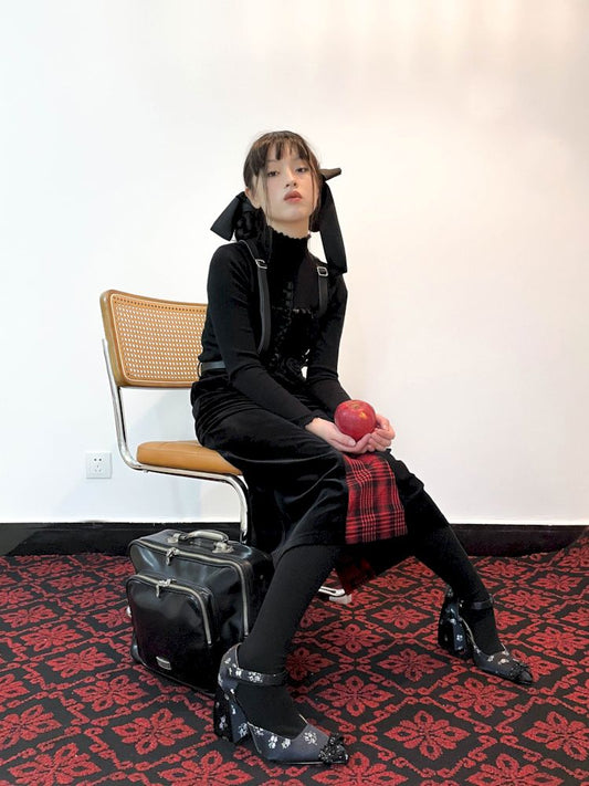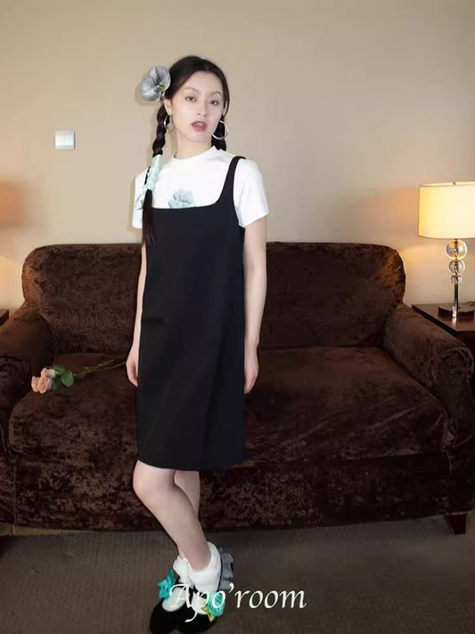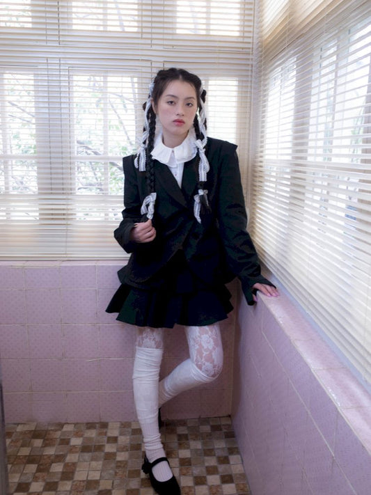 Schwarzer Design-Anzug mit doppeltem Kuchenrock