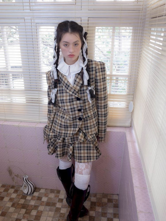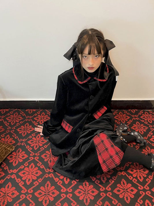 Samtblazer, herzförmige Wickelknöpfe, karierte Nähte