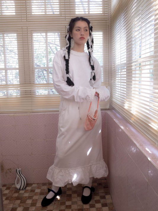 Weißer Halbkörperrock aus Sweatshirt-Material mit Schlitz und Spitze